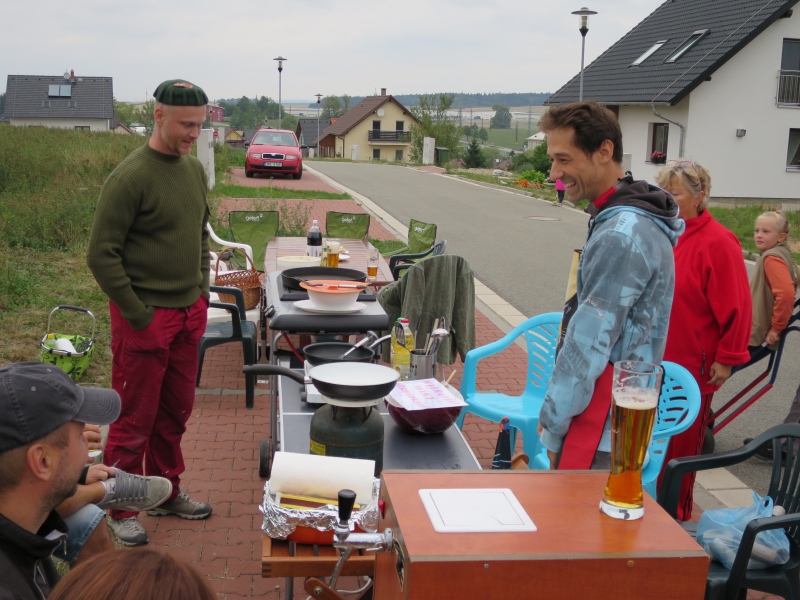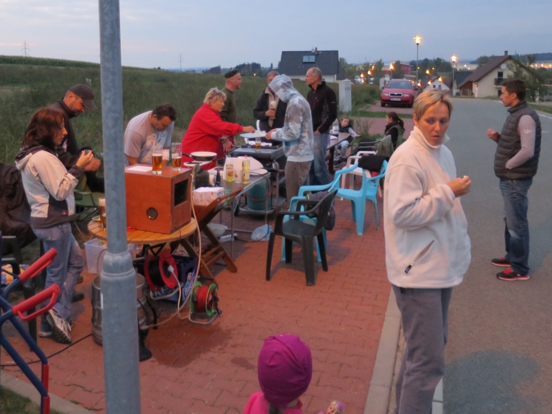 I když se vše dělo v horní části ulice, myšlenka, organizace a provedení, vše vzešlo z dolního konce. A tak nezbývá než poděkovat Červeným, Šalomounovým i Plachetkovým. Ale pozor. Přes všechny jejich zásluhy, mají pěkný vroubek. Ukradli Zdeňkovi myšlenku bramborákové soutěže a navíc jak na potvoru ji realizovali v době, když byli Petrasovi na dovolené. A to vám Zdeněk spočítá! Na závěr jedna technická. Připojil jsem pár fotek z mého přístroje, ale je škoda, že mi ostatní fotící nedodali další fotky, které by lépe vystihli atmosféru této povedené akce..