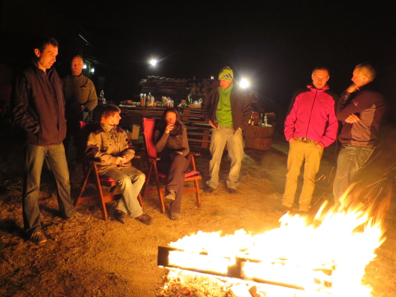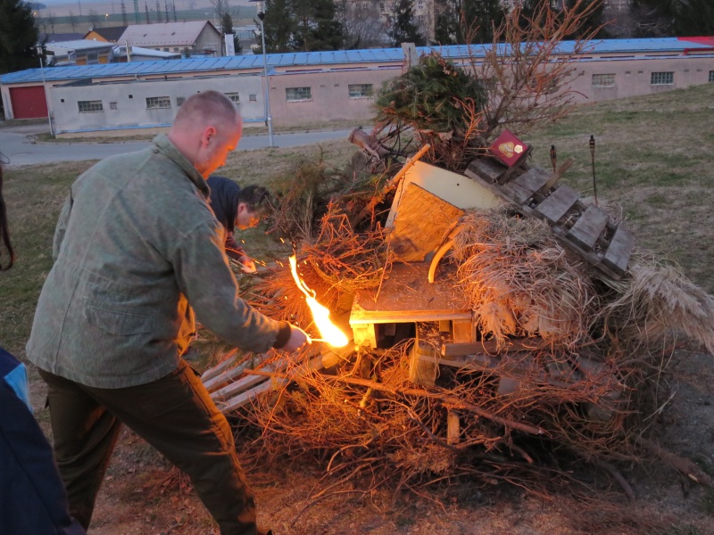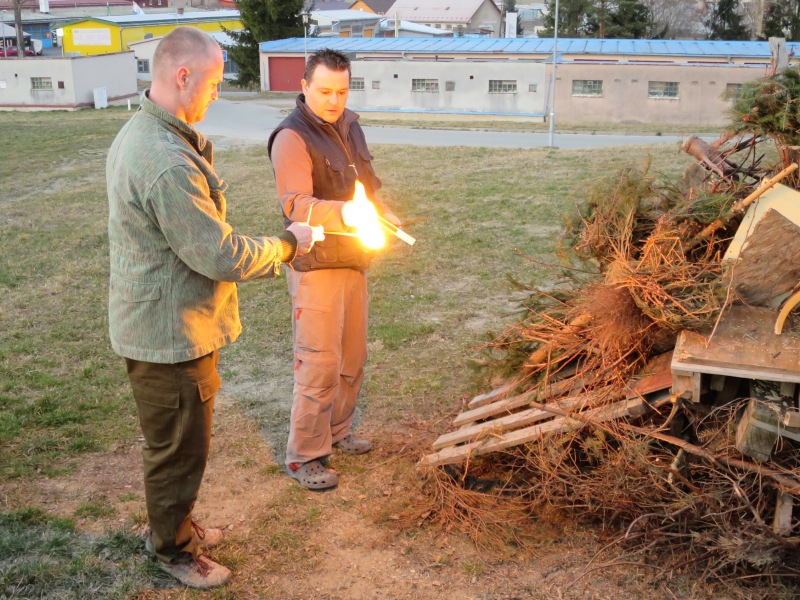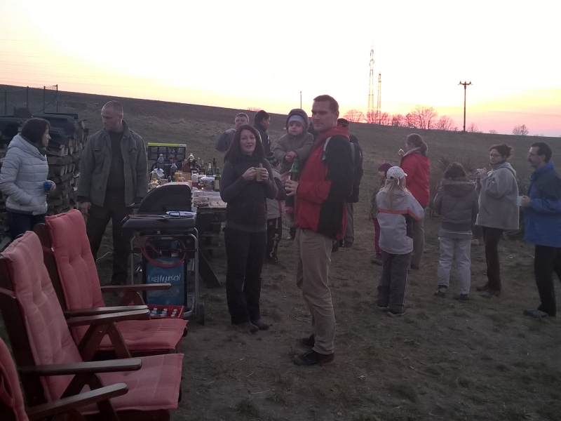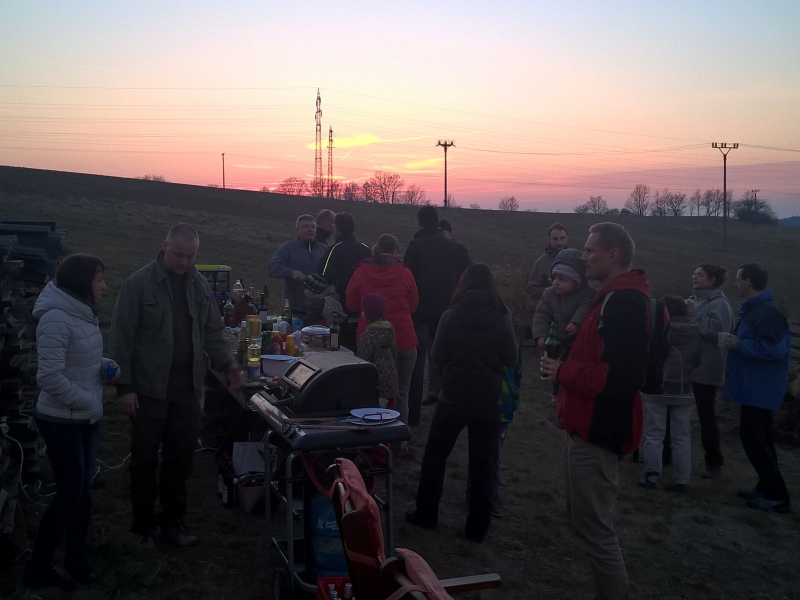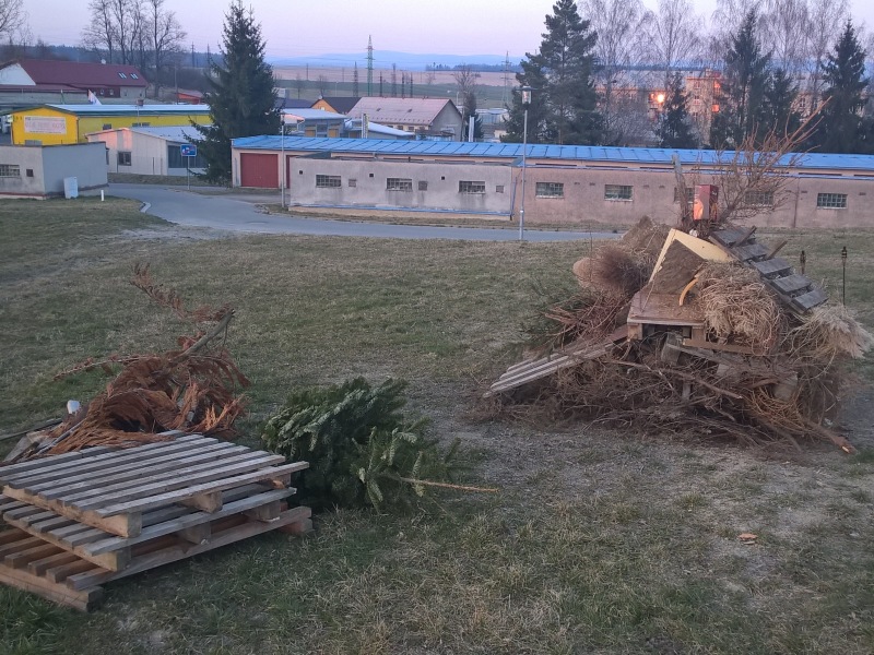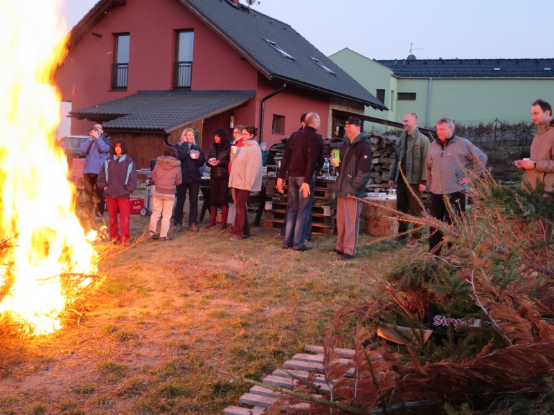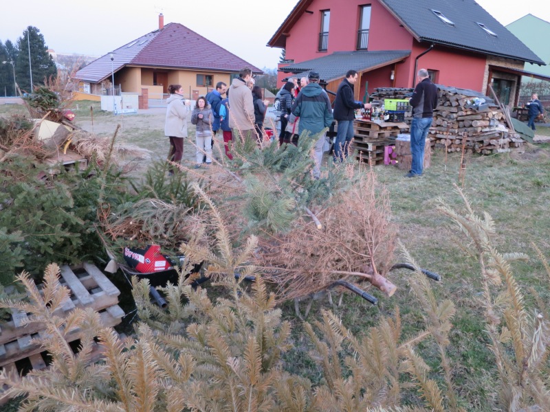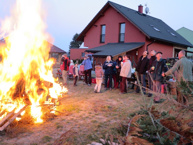 V páteční podvečer jsme se sešli na další společné akci – pálení vánočních stromků. Červení a Šalomounovi se postarali o perfektní servis celé akce, připravili bar, sezení, gril, občerstvení pro dospělé i pro děti, nachystali vše potřebné k nastolení pohodové atmosféry. Samozřejmě že nechyběla hranice, pagoda či jak to nazvat, prostě oheň a louče. A když i ostatní příchozí dorazili s náručemi plnými dobrot, vypadalo to téměř jako na malé svatbě.
