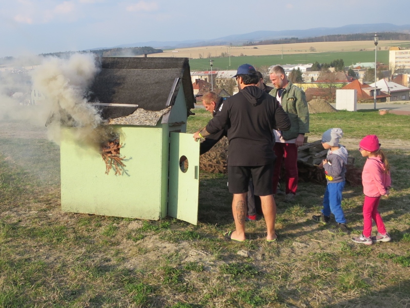 Pátek 5. dubna 2019. Letošní pálení stromků jsme z technických důvodů přesunuli na horní konec. Stavební práce inženýrských sítí pro lokalitu „Velká láň“ nám totiž nedovolily využít plochu vedle Červených. [Show slideshow] Pálení stromků 2019